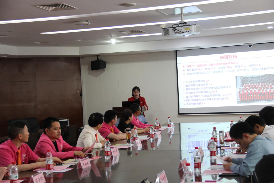 主持人湯瑞瑞代表四川農(nóng)業(yè)大學食品學院對光友薯業(yè)一行表示熱烈歡迎,一一介紹校方參會人員,并簡略講解了學院的發(fā)展與現(xiàn)狀。