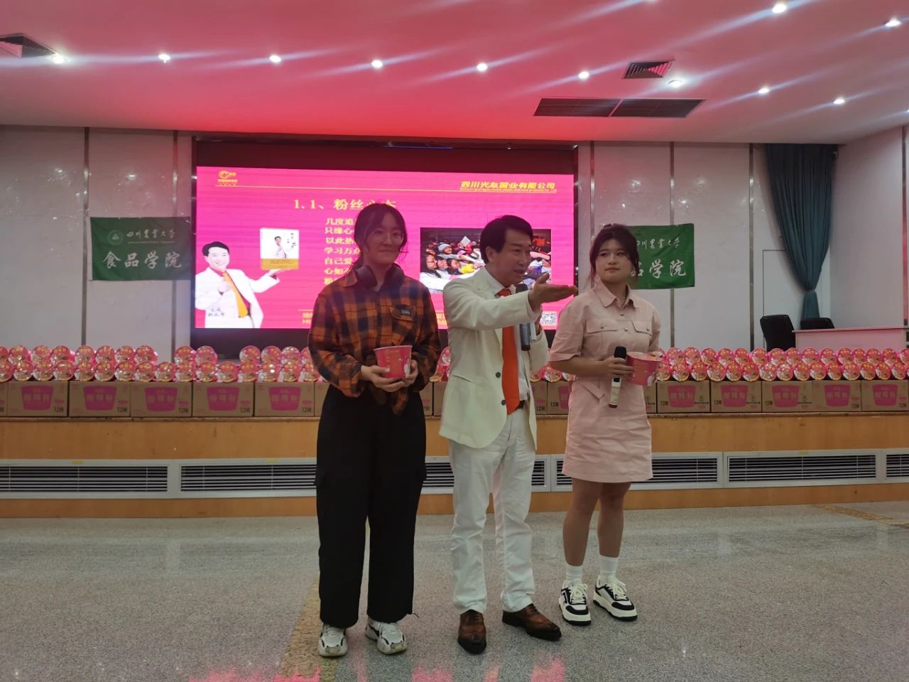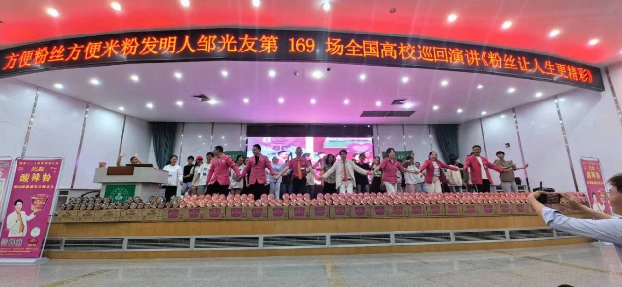 4月25日,陽光曜靈,和風容與。正是麗日當空時,光友薯業(yè)走進了綠意盎然、洋溢著青春活力的四川農(nóng)業(yè)大學食品學院,開展了校企深化合作交流座談會,組織考察校區(qū)各食堂、超市,中國食品產(chǎn)教融合共同體副理事長、中國食品科學技術(shù)學會理事、方便粉絲方便米粉發(fā)明人、方便粉絲專家、教授級高工、新中國成立60年“三農(nóng)”模范人物、光友薯業(yè)創(chuàng)始人、光友薯業(yè)董事長鄒光友鄒光友成功舉行了全國高校第169場創(chuàng)業(yè)勵志演講。