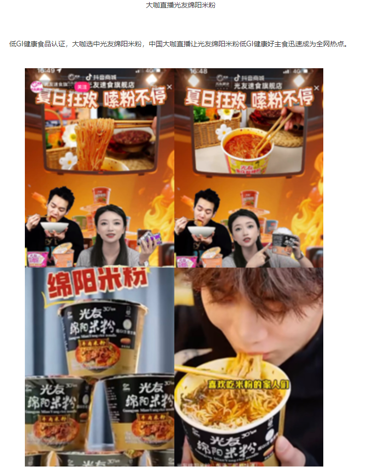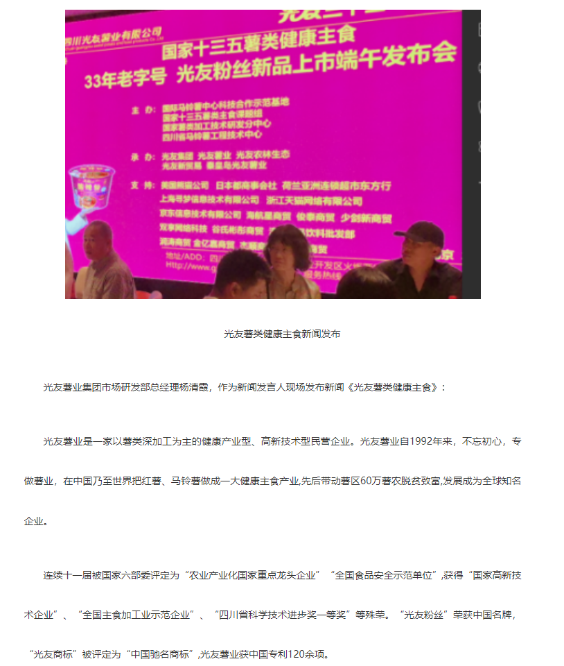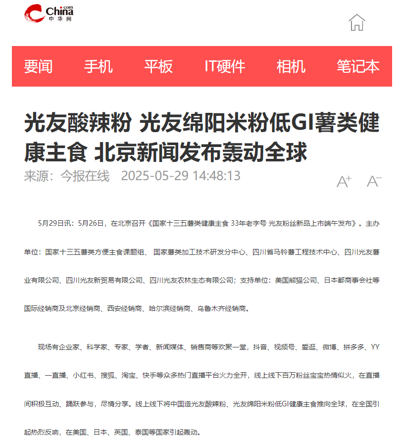 轉(zhuǎn)載中華網(wǎng)——光友酸辣粉 光友綿陽(yáng)米粉低GI薯類健康主食 北京新聞發(fā)布轟動(dòng)全球