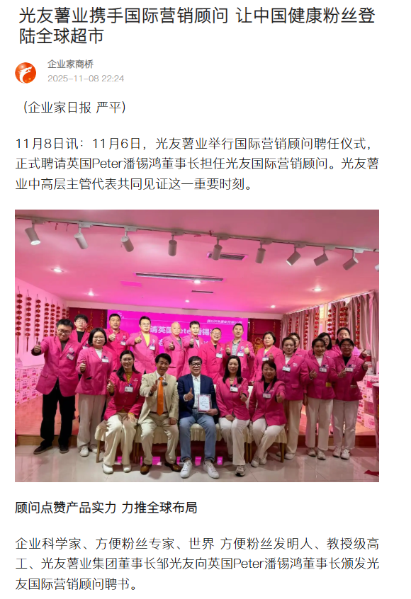 光友薯業(yè)攜手國際營銷顧問 讓中國健康粉絲登陸全球超市