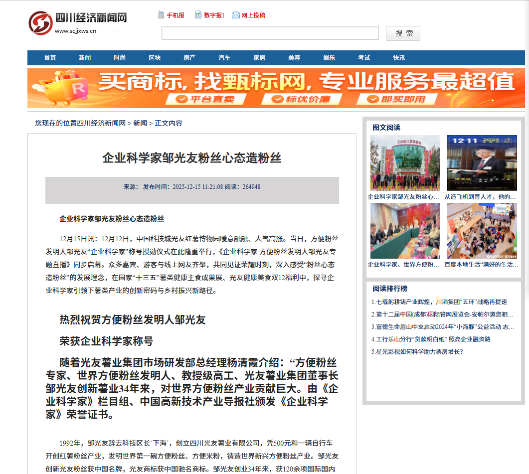 轉(zhuǎn)載四川經(jīng)濟網(wǎng)-企業(yè)科學家鄒光友粉絲心態(tài)造粉絲