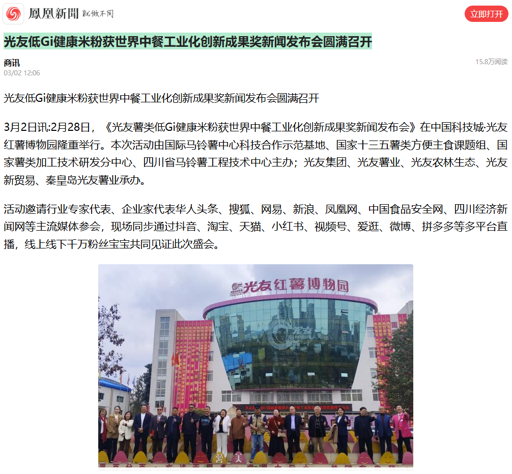 光友低Gi健康米粉獲世界中餐工業(yè)化創(chuàng)新成果獎(jiǎng)新聞發(fā)布會(huì)圓滿召開(kāi)https://ishare.ifeng.com/c/s/8rA9R8r7LEH